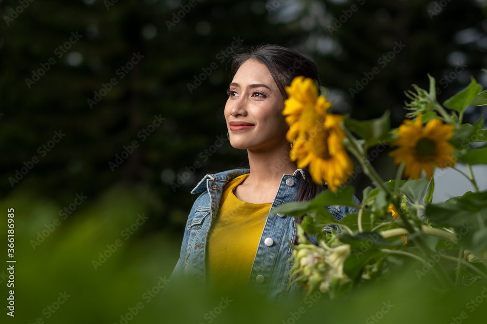 Beautiful asian woman wit sunflower