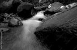 Waterfall is flowing in jungle. Rock or stone at waterfall. Waterfall in tropical forest. Nature background. Green season travel. Smooth flowing of water. Eco tourism. Waterfall in abundance wild.