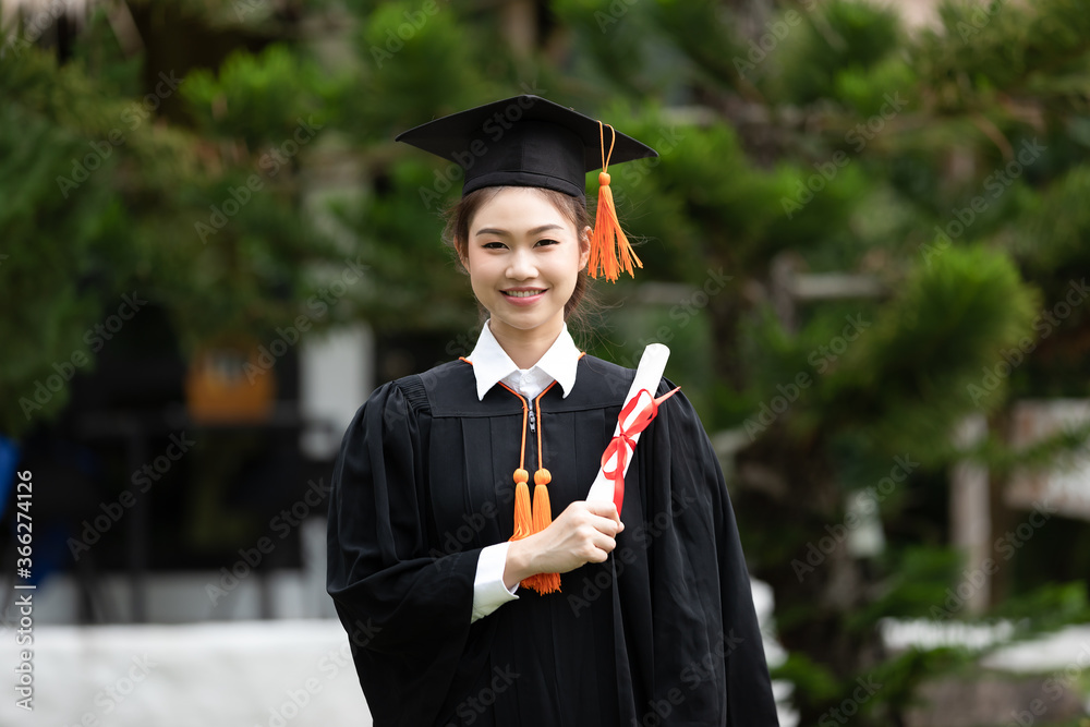 Attractive Asian Women Student Graduate in cap and gown celebrating