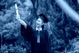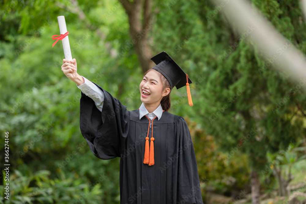 Attractive Asian Women Student Graduate in cap and gown celebrating