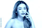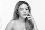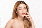 Beautiful Asian young woman touching soft cheek smile