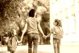 Parent and pupils go to school