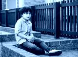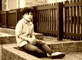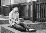 Outdoor portrait of little boy looking out with thinking face, Child playing outdoor activity.