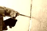 a jackhammer handles a gap in a concrete wall