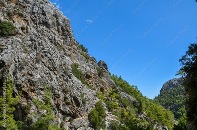 Scene with mountain rocks in Goynuk Canyon in Turkey. Famous Lycian way Trekking