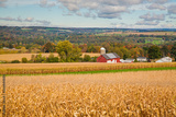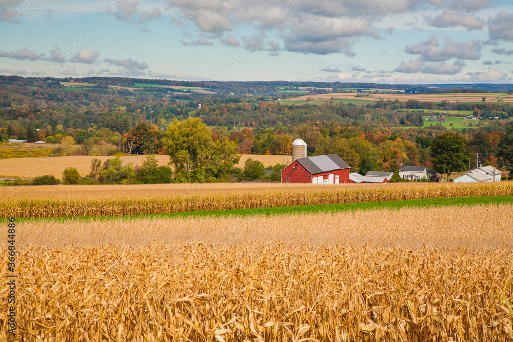 A corn field, Red Barn and Silo in the Finger Lakes Region of Upper New York
