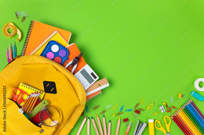 School backpack isolated on green background.