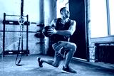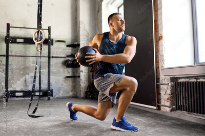 sport, bodybuilding, fitness and people concept - young man exercising with medicine ball in gym