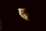 Gold sand explosion isolated on black background. Abstract sand cloud.