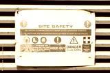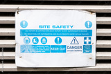 Construction site health and safety message rules sign board signage on fence boundary