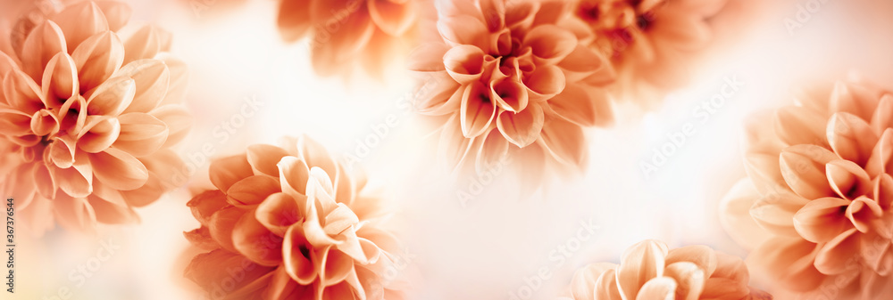 Autumn floral composition made of fresh dahlia on light pastel background. Festive flower concept with copy space.