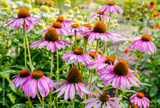 Pink echinacea flowers in the garden