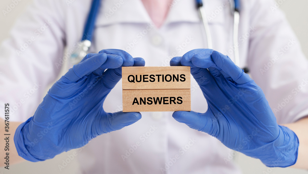 Q and A - Questions and Answers - inscription words sign on wooden block in doctor hands, medical questions concept