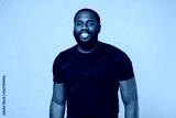 Smiling african american man guy football fan in casual black t-shirt isolated on yellow wall background studio portrait. People sincere emotions lifestyle concept. Mock up copy space. Looking camera.