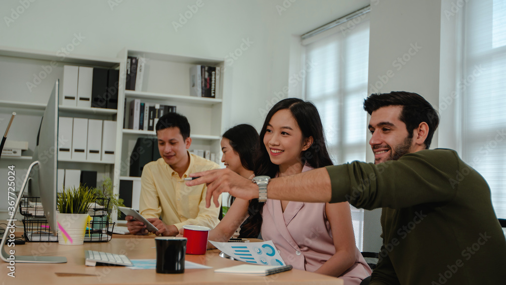 brainstorming and teamwork concept, business people office worker working and planing about project