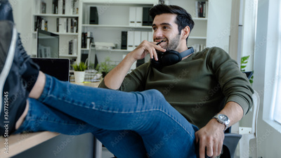 smart man sitting and resting on chair, positive male relax in office with comfortable