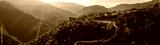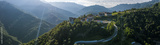 Rosa Khutor plateau, buildings, slopes and chair lifts. Aerial view at summer. Russia, Sochi, Krasnaya Polyana. Panorama