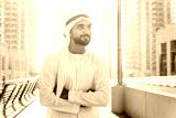 Beautiful middle eastern man wearing kandora traditional outfit in Dubai. Portraits in the emirates