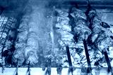 Grilling marinated shashlik on a grill. Shashlik is a form of Shish kebab