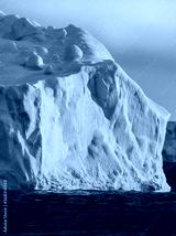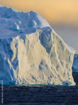 Sunset in the Weddel Sea with dramatic light on ice bergs
