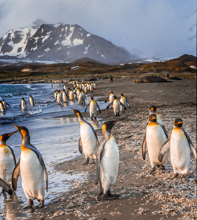 thousands of king penguins on the island of Saint Andrews in south Georgia, near Antarctica