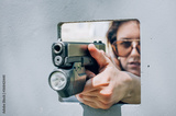 Close-up abstract view of attractive female army soldier have gun shooting training from behind and around cover or barricade. Advanced fighting tactical shooting courses on shooting range
