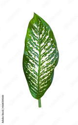 Green leaf of dumb cane plant isolated on white background , clipping path