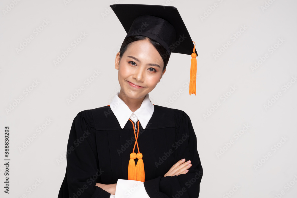 Beautiful Attractive Asian woman graduated in cap and gown smile
