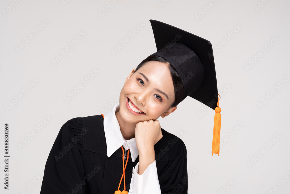Beautiful Attractive Asian woman graduated in cap and gown smile