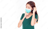 Beautiful young asian woman wear protective face mask. Protection versus viruses, infection and protection of air pollution. Prevention and protection coronavirus concept with white background.