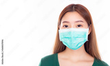 Beautiful young asian woman wear disposable face mask. Protection versus viruses and infection or protection of air pollution. Prevention and protection coronavirus concept with white background.