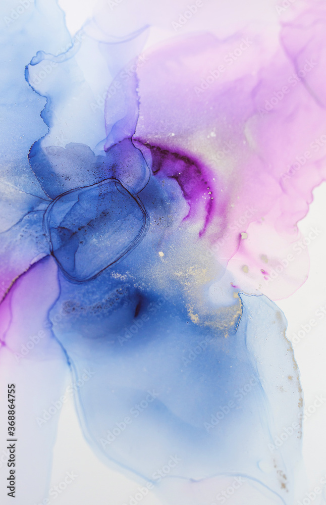 Abstract purple, blue, silver background, wallpaper. Mixing acrylic paints. Modern art. Alcohol ink colors translucent. Alcohol Abstract contemporary art fluid.