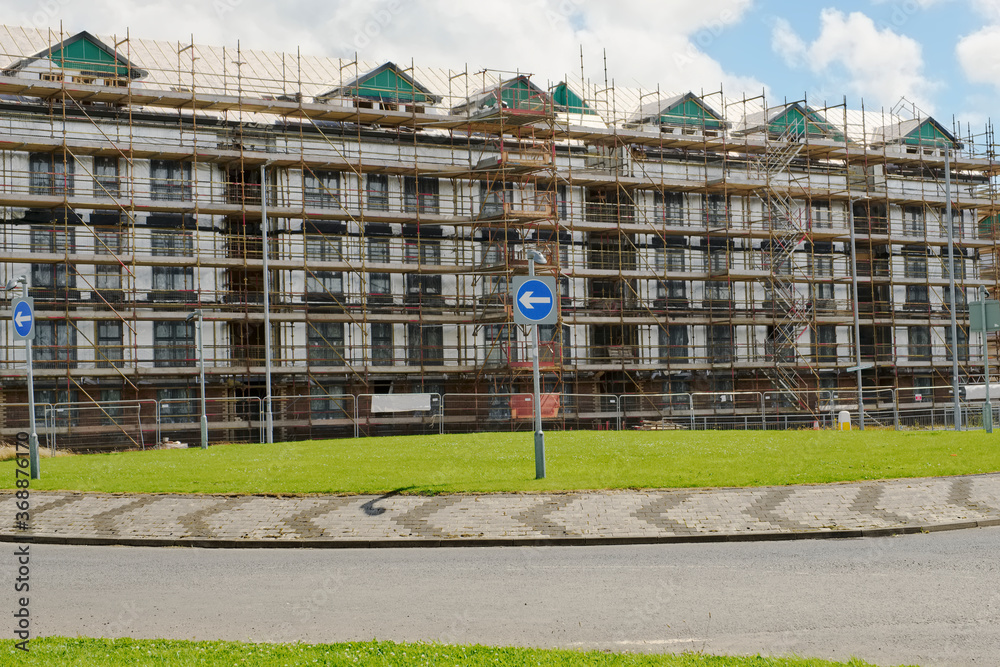 Scaffolding surrounding house development for safe access to construction work