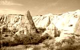 Amazing landscapes, ancient cave homes and rock formations in colourful Pigeon Valley in Cappadocia, Turkey. Traveling the world concept