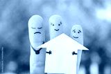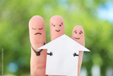 Fingers art of family during quarrel. Concept of man and woman divide house after divorce.