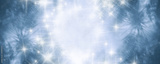 Christmas winter festive background with fir paws, snow and bokeh.