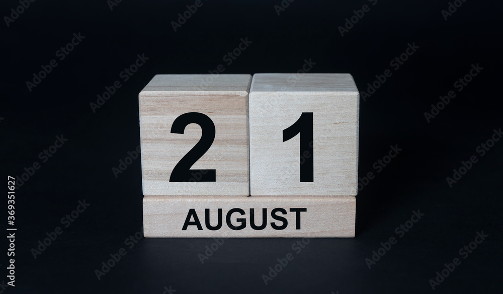 August 21, Number cube on black background, International Day of Remembrance and Tribute to the Victims of Terrorism