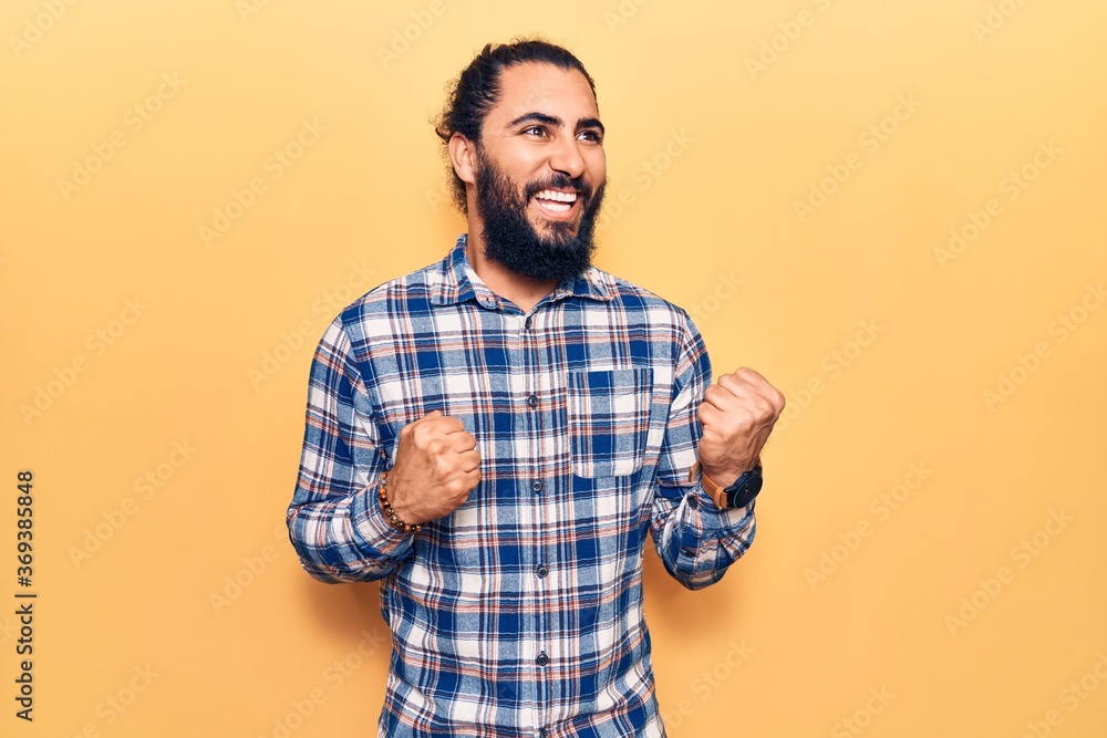 Young arab man wearing casual clothes celebrating surprised and amazed for success with arms raised and eyes closed