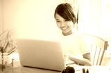 Smiling Little asian girl using laptop to learning online at home and typing on keyboard homeschool concept