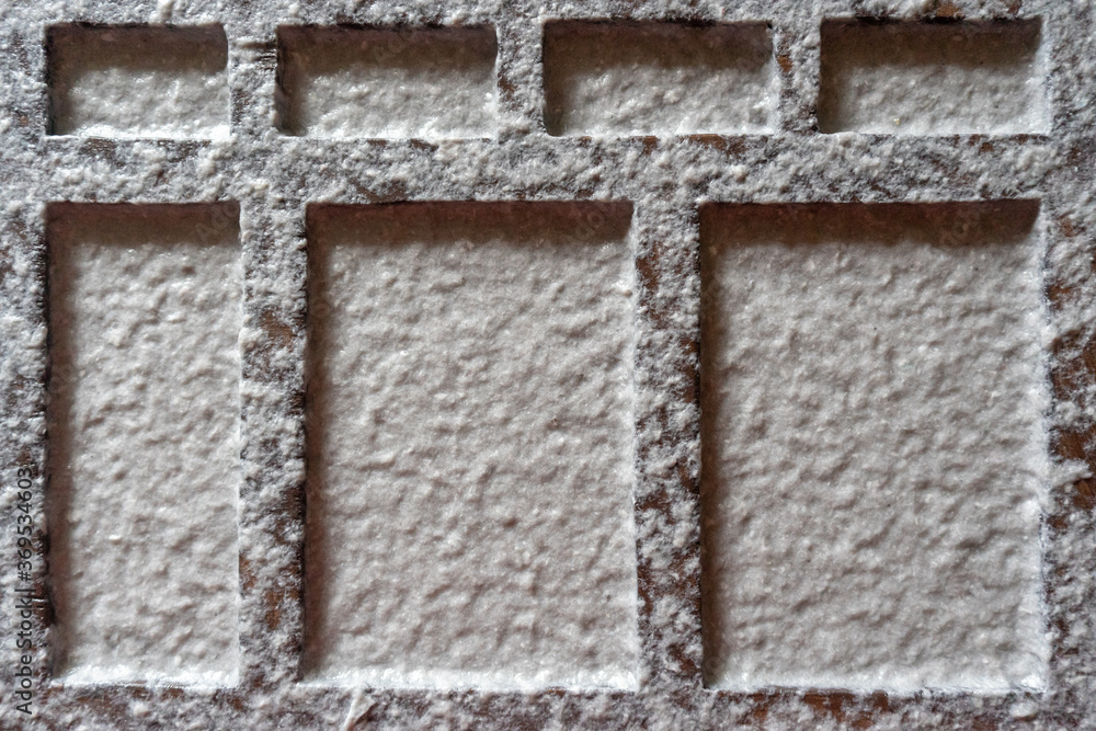 Frames with pulp for making hand-made paper lie on a white dish on the table. The concept of recycling waste paper and creating exclusive products.