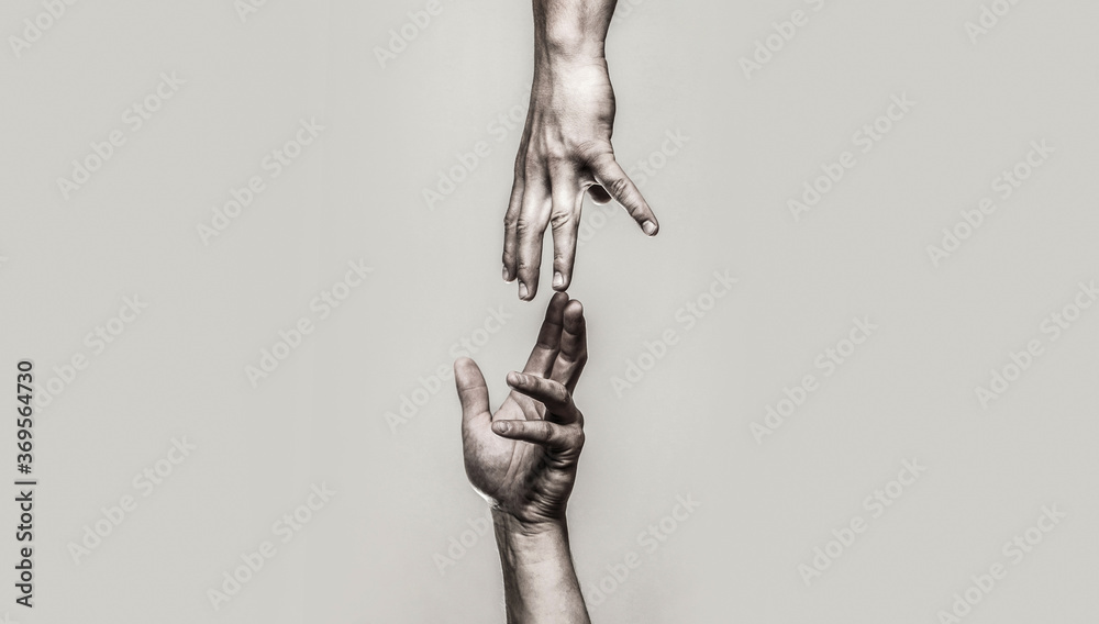 Close up help hand. Helping hand concept and international day of peace, support. Two hands, helping arm of a friend, teamwork. Black and white