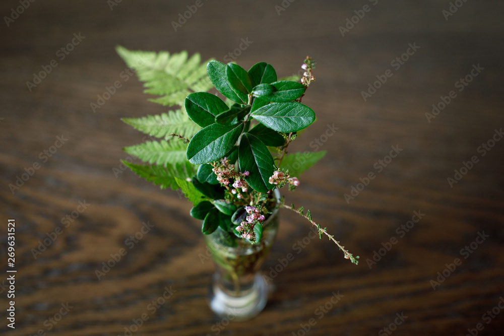 Close-up of Linden tree green leaves and flowers on branch. Tilia tree