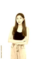 Portrait attractive young asian beautiful woman. Pretty girl crossed arms and look confident smiley face. Lovely lady wear jeans and vest in summer season. Isolated on white background. fashion girl
