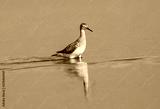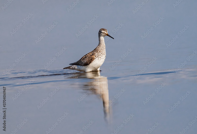 Greater yellowlegs walks through shallow water