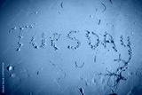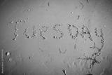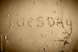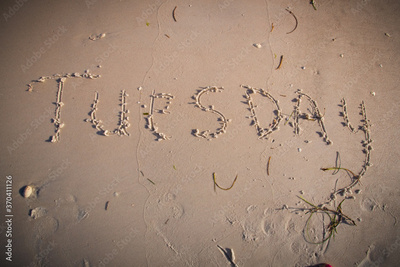 Tuesday written on beach sand