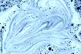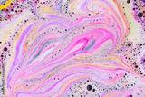 Colorful rainbow bath foam with bubbles in the water. Galaxy imagination. Marble texture effect. Beauty and luxury background. Flat lay, top view, abstract art.