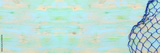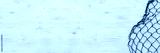 Top view of Fishnet on pastel blue wooden background. top view, flat lay