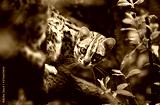 Leopard Cat, prionailurus bengalensis, Adult standing on Branch