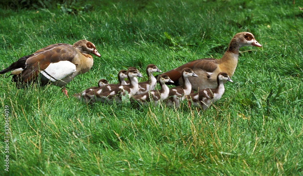 Egyptian Goose, alopochen aegyptiacus, Male with Female and Goslings