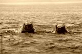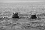 Southern Right Whale, eubalaena australis, Two Heads emerging from Ocean, Hermanus in South Africa